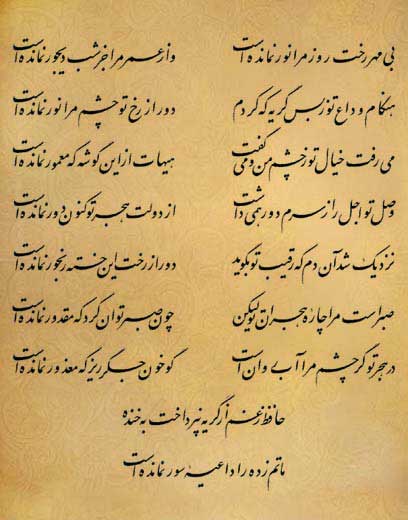 (8)حافظ اندوهگين جز از گريه، هرگز به خنده روي نميآورد. براي ماتم زده شادي و سرور مفهومي ندارد.